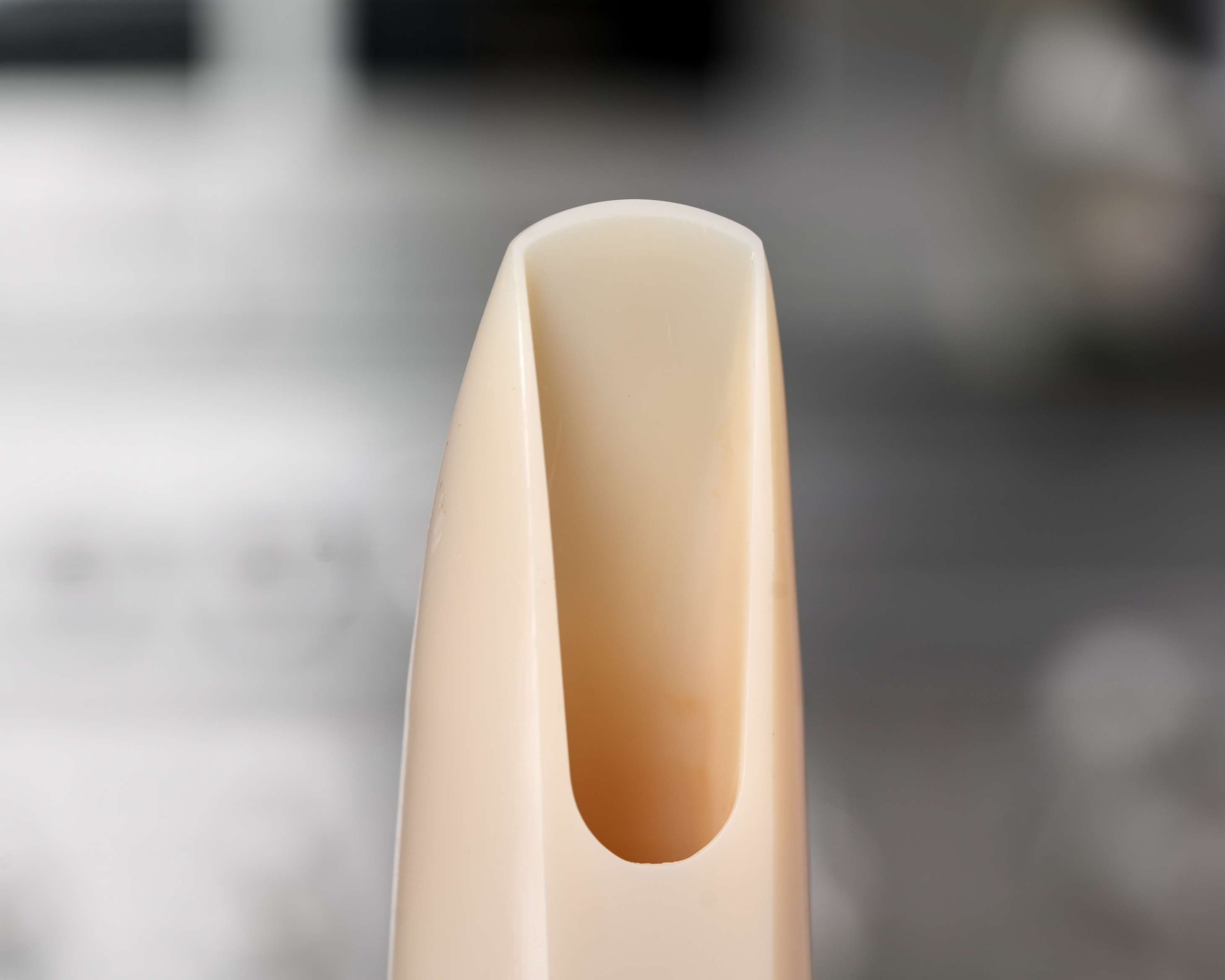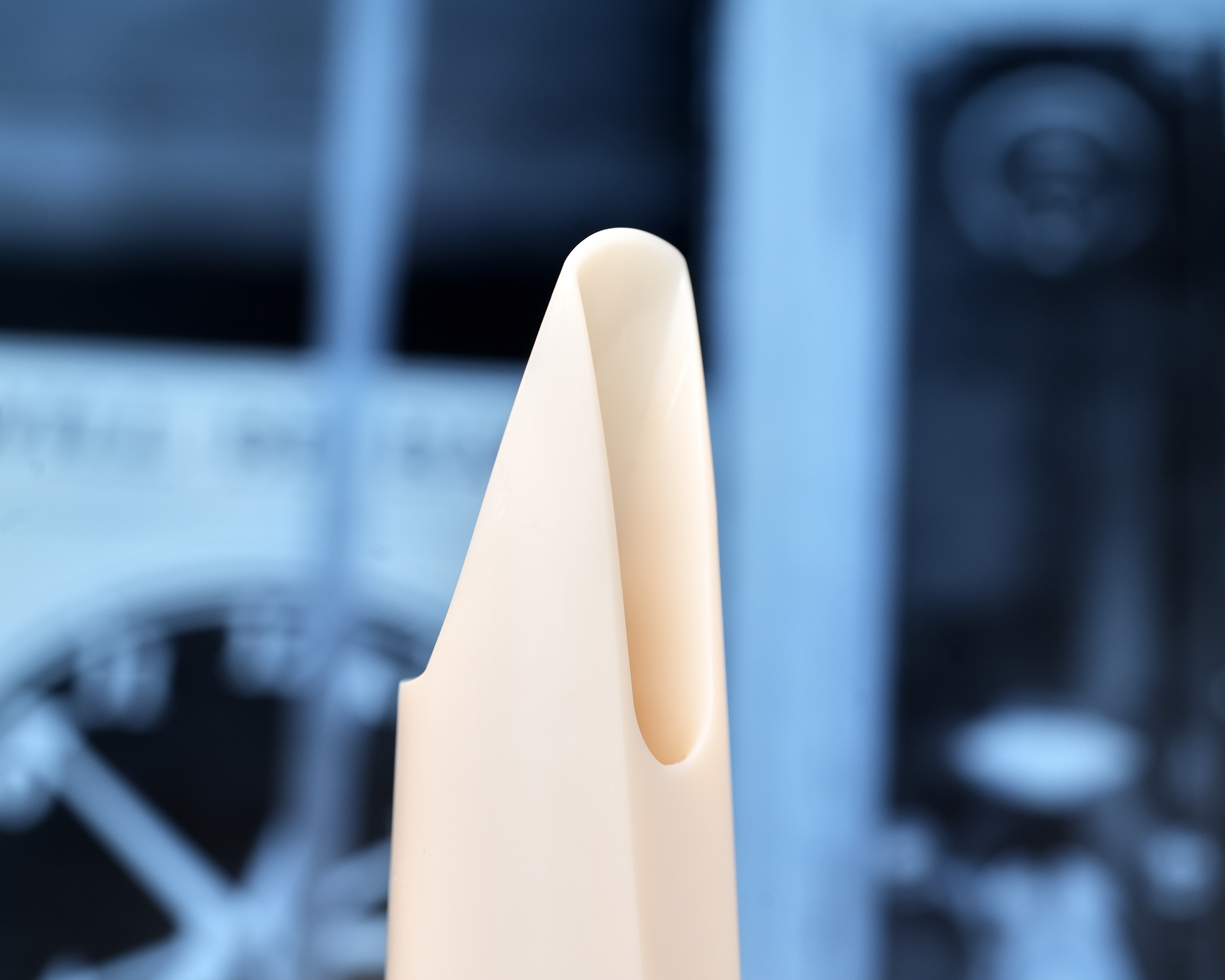 The Hyperion Mouthpiece has the heart (literally) of the iconic mid-century jazz sound. Micro CT scanning recreates the exact resonant core of a 1950s Brilhart, sculpted into a stylish updated form. Crafted from biocompatible resin, the Hyperion mouthpiece sings and rings with a resonant balance of the harmonic spectrum: Deep lows, clear mids, and warm upper colors. Each mouthpiece is hand faced to GS mouthpieces’ exact specification, ensuring a responsive, singing tone. The white performance resin not only exudes classic beauty, but is more durable than traditional hard rubber.